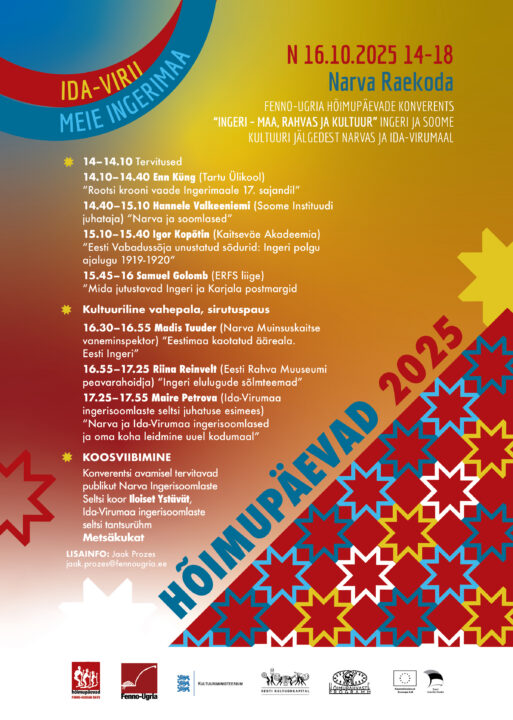 17.25 – 17.55 Maire Petrova (Ida-Virumaa ingerisoomlaste seltsi juhatuse esimees) “Narva ja Ida-Virumaa ingerisoomlased ja oma koha leidmine uuel kodumaal”