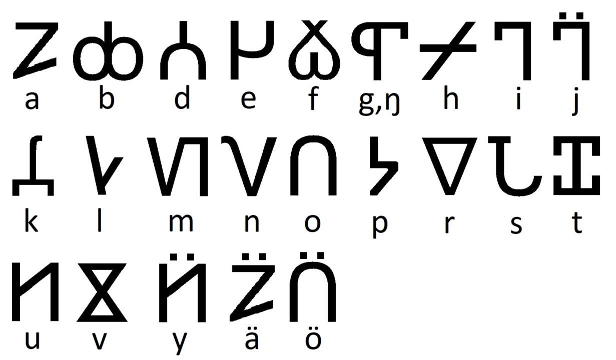 Anburi tähemärgid soome keelele (Suomen Anbur-Seura).